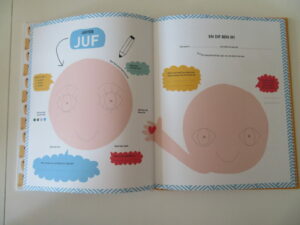Dit is een boekje dat je als leerkracht niet vaak krijgt. Juist door het invullen van het boekje door een leerling is dit boekje een onvergetelijk cadeau. Zelf heb ik een mooie kist waarin ik allerlei verschillende herinneringen aan schoolklassen bewaar, inclusief natuurlijk alle groepsfoto’s van de schoolfotograaf. Dit boekje zou daar zeker ook een mooi plekje in krijgen. Ik vind dit bijzonder, omdat het heel veel vertelt van hoe de leerling naar jou als leerkracht kijkt. Wat denkt de leerling dat je graag eet, hoe oud denkt de leerling dat je bent en wat wenst de leerling jou toe.
